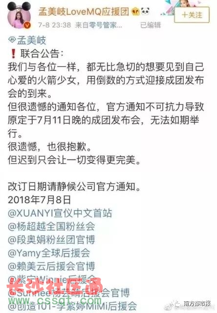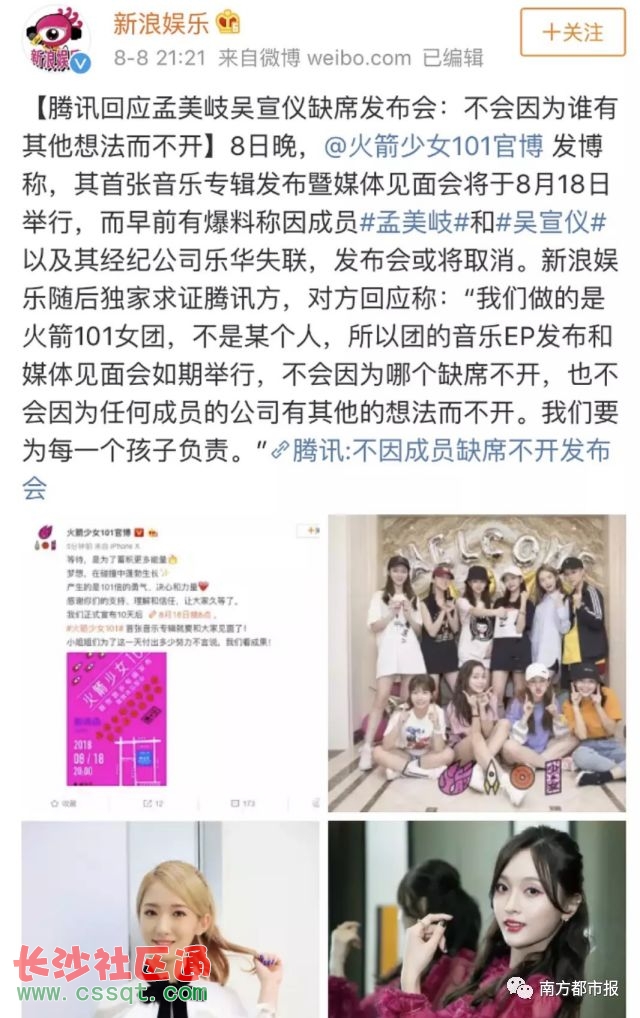 昨天晚上,火箭少女101官博女團(tuán)發(fā)博稱,首張音樂專輯發(fā)布會(huì)將于8月18日舉行。 昨晚就有傳言,孟美岐、吳宣儀二人可能缺席發(fā)布會(huì),騰訊回應(yīng)不會(huì)因?yàn)檎l有其他想法而不開。 今天,樂華娛樂及麥銳娛樂發(fā)布聲明,旗下藝人孟美岐、吳宣儀、張紫寧將退出火箭少女。 原因是在與《創(chuàng)造101》的合作中,藝人工作超負(fù)荷、生活作息全無保障,為了保護(hù)藝人而終止合作。 消息一出,全網(wǎng)都炸了,瞬間承包了微博熱搜。 其實(shí)自6月23日火箭少女成團(tuán)后就風(fēng)波不斷,孟美岐、吳宣儀退團(tuán)也早有跡象。 7月8日,火箭少女101在中國傳媒大學(xué)進(jìn)行活動(dòng)拍攝,當(dāng)天孟美岐、吳宣儀、Sunnee、段奧娟四位成員沒有出席。 當(dāng)晚,原定在7月11日舉行的成團(tuán)發(fā)布會(huì)也宣告取消。 據(jù)傳,孟美岐吳宣儀的公司樂華娛樂和韓國 Starship 公司因不滿合同條約,以 " 染發(fā) " 為由帶走了她們,不讓她們參與火箭少女 101 的活動(dòng),以此向騰訊方施壓。 當(dāng)時(shí)更有爆料,兩人已經(jīng)搬出了火箭少女的宿舍,被公司安排住在酒店。 少女們在參加《創(chuàng)造101》之前已各有經(jīng)紀(jì)公司,孟美岐、吳宣儀更已是中韓團(tuán)體 " 宇宙少女 " 的成員。 該團(tuán)體由韓國 Starship Entertainment 與中國樂華娛樂聯(lián)合推出,由 3 名中國人及 10 名韓國人組成。 只是此前,宇宙少女不火,孟美岐、吳宣儀在宇宙少女里也不占優(yōu)勢,而她們倆在火箭少女里是C位。 《創(chuàng)造 101》主辦方騰訊在開播之前就和各個(gè)公司協(xié)議好:一旦選手們被選拔出道,將會(huì)在騰訊方的管轄下進(jìn)行為期兩年的團(tuán)體活動(dòng)。 在火箭少女 101 的成團(tuán)之夜當(dāng)天,《創(chuàng)造 101》的總制片人也反復(fù)強(qiáng)調(diào) 11 個(gè)女孩未來兩年只會(huì)在火箭少女 101 活動(dòng)。 所以樂華娛樂、麥銳娛樂和騰訊的矛盾就在于,旗下藝人在作為火箭少女101成員進(jìn)行活動(dòng)時(shí),還能不能以原組合成員身份進(jìn)行活動(dòng)。 除了孟美岐、吳宣儀,組合里的張紫寧、Sunnee在參加《創(chuàng)造101》之前也各自有自己的團(tuán)體。 紫寧所在組合MERA 早在7月份就有網(wǎng)友爆料,樂華娛樂會(huì)聯(lián)合麥銳娛樂、可米領(lǐng)譽(yù),三家公司一起帶走旗下藝人,以此逼迫騰訊允許兩團(tuán)并行活動(dòng)。 目前來看,孟美岐、吳宣儀、張紫寧已經(jīng)宣告退出,11人團(tuán)成8人團(tuán),的確應(yīng)驗(yàn)了網(wǎng)友爆料內(nèi)容。 今日有傳言稱Sunnee和段奧娟的經(jīng)紀(jì)公司也在策劃退團(tuán),不知這波預(yù)言是否也會(huì)實(shí)現(xiàn)? 更有傳孟美岐、吳宣儀會(huì)和宇宙少女里的程瀟成立一個(gè)新組合出道。 程瀟也同屬樂華娛樂,因在《偶像練習(xí)生》擔(dān)綱導(dǎo)師,人氣和知名度有了大幅度提升。 目前火箭少女官博還沒有回應(yīng)退團(tuán)事件,倒是發(fā)了一條楊超越即將參加綜藝的宣傳,這是暗搓搓證實(shí)了C位傳言? 連王思聰也忍不住發(fā)微博吐槽↓ 組合內(nèi)實(shí)力最受質(zhì)疑的楊超越,不僅順利出道,還在出道不夠兩個(gè)月的時(shí)間就成為了組合C位,這運(yùn)氣也沒誰了吧? 怪不得大家都要紛紛轉(zhuǎn)發(fā)這條人形錦鯉了。 轉(zhuǎn)發(fā)楊超越,比你成績好的同學(xué)自動(dòng)轉(zhuǎn)學(xué)、你討厭的同事自動(dòng)離職、你強(qiáng)有力的競爭對手都會(huì)主動(dòng)棄權(quán)…… 魏瓔珞,靠著口才縱橫后宮的奇人;噬、皇后、皇后弟弟都愛她,同僚、妃子、太妃都被她說死,關(guān)鍵時(shí)候天雷也為她助力…… 轉(zhuǎn)發(fā)魏瓔珞,仇人都會(huì)被解決、優(yōu)秀的男人都為你傾倒、金手指隨便開! 楊超越、魏瓔珞,這人形錦鯉誰更強(qiáng)?