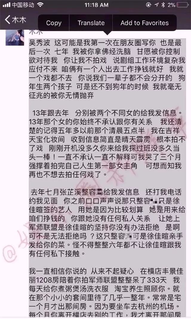 1.和吳秀波地下情七年,放棄一切甘愿被他控制且毫無底線的付出照顧