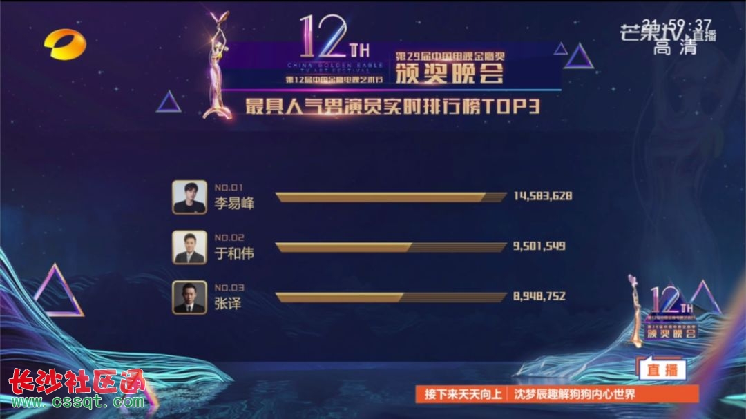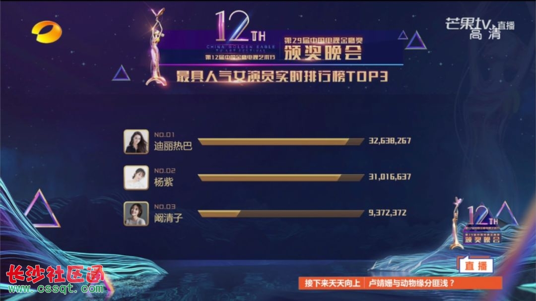 今!晚!看!什!么! 金!鷹!節(jié)! “金鷹高飛,視界燦爛”,第12屆金鷹節(jié)頒獎晚會今晚七點半湖南衛(wèi)視現(xiàn)場直播,到達現(xiàn)場的明星陣容強大。 晚會現(xiàn)場頒出了第29屆中國電視金鷹獎優(yōu)秀電視劇、最佳編劇、最佳導演和觀眾喜愛男、女演員等獎項,揭曉第十二屆中國金鷹電視藝術(shù)節(jié)最具人氣男、女演員。 小妹為您報道金鷹節(jié)最新資訊 大獎名單 ◆ ◆ ◆ ◆ ◆ 觀眾喜愛的女演員獎①(1 人) 迪麗熱巴 《漂亮的李慧珍》 開獎嘉賓:吳剛、侯勇 ◆ ◆ ◆ ◆ ◆ 最佳攝像獎( 1 人) 智磊 《那年花開月正圓》 最佳美術(shù)獎( 1 人) 王紹林《情滿四合院》 開獎嘉賓:林永健、關(guān)曉彤 ◆ ◆ ◆ ◆ ◆ 觀眾喜愛的男演員獎①(1 人) 張譯《雞毛飛上天》 開獎嘉賓:于榮光、吳磊、林允 ◆ ◆ ◆ ◆ ◆ 最佳導演獎(1 人) 陳力 《海棠依舊》 開獎嘉賓:于和偉 殷桃 最佳編劇獎(1 人) 申捷《雞毛飛上天》 開獎嘉賓:于和偉 殷桃 ◆ ◆ ◆ ◆ ◆ 觀眾喜愛的女演員獎②(1 人) 丁柳元 《初心》 開獎嘉賓:奚夢瑤、李易峰 ◆ ◆ ◆ ◆ ◆ 觀眾喜愛的男演員獎②(1 人) 李易峰《麻雀》 開獎嘉賓:董潔、袁姍姍 ◆ ◆ ◆ ◆ ◆ 終身成就電視藝術(shù)家(2 人) 李準 著名文藝評論家 王朝柱 著名劇作家 開獎嘉賓:游本昌、王剛、 唐國強、張凱麗、閆妮、佟麗婭 ◆ ◆ ◆ ◆ ◆ 最具人氣演員獎一男一女(2 人) 最具人氣男演員獎:李易峰 開獎嘉賓:韓磊、江珊 最具人氣女演員獎:迪麗熱巴 開獎嘉賓:韓磊、江珊 ◆ ◆ ◆ ◆ ◆ 最佳電視劇(1 個) 《海棠依舊》 開獎嘉賓:劉濤、王洛勇、康洪雷 優(yōu)秀電視。 11 個) 《白鹿原》、《雞毛飛上天》、《絕命后衛(wèi)師》、《換了人間》、《情滿四合院》、《天下糧田》、《初心》、《漂亮的李慧珍》、《熱血軍旗》、《春風十里不如你》、《春天里》 開獎嘉賓:劉濤、王洛勇、康洪雷