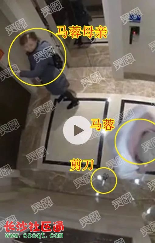 隨后,騰訊娛樂《貴圈》獲取了一段小區(qū)監(jiān)控視頻。視頻中顯示,馬蓉和其母親于19點(diǎn)37分抵達(dá)王寶強(qiáng)父母所住的樓層電梯間。在發(fā)現(xiàn)頭頂攝像頭后,馬蓉一度跳起來,疑似想取下攝像頭鏡頭。但是攝像頭碰觸未果后,從馬蓉身上掉落一把剪刀。馬蓉拾起剪刀,轉(zhuǎn)身進(jìn)入大門內(nèi)。馬蓉母親則舉著手機(jī)開始拍攝。