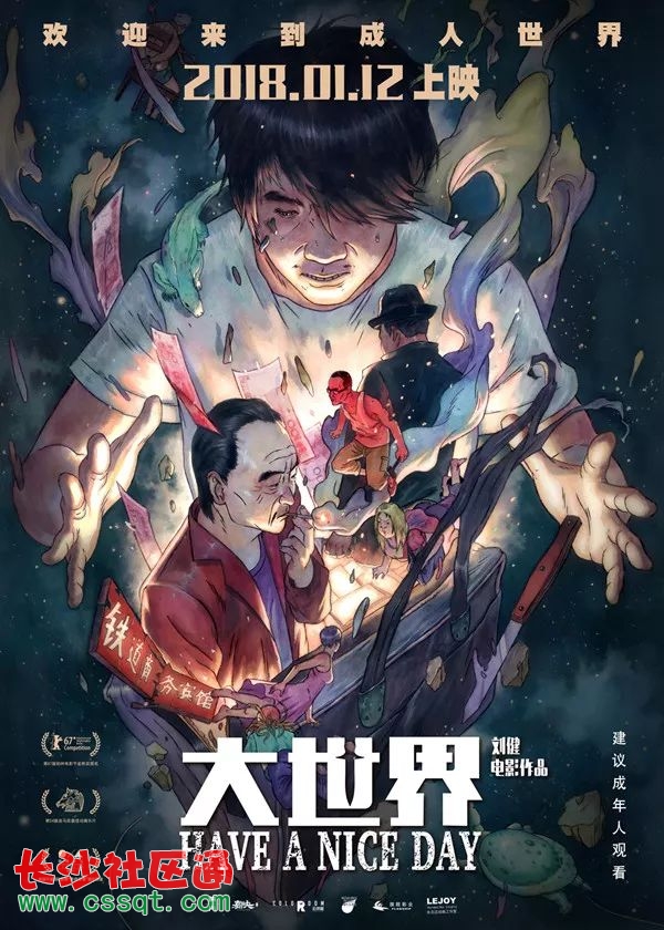 鑒于城市模式化高速發(fā)展導(dǎo)致的外觀相似、鄉(xiāng)村式微,《大世界》中雖有長江大橋等南京標(biāo)志性建筑物出現(xiàn),角色的配音也由劉健及他南京的作家、藝術(shù)家朋友曹寇等人操著蘇北方言完成,影片故事地點卻不像婁燁的《春風(fēng)沉醉的夜晚》《推拿》般,鮮明地指出事發(fā)南京,一幫原本互不相交的底層人士圍繞100萬人民幣命運相撞的情節(jié),似乎放置在其他城鎮(zhèn)均能成立,不分南北,無問西東。
