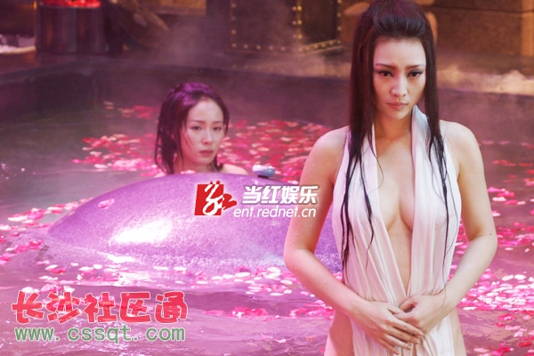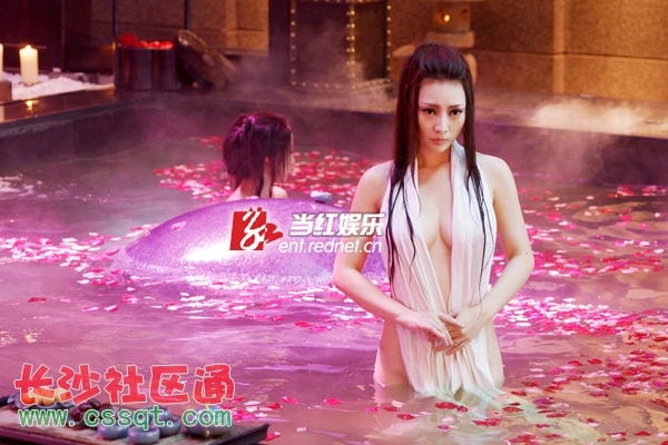 在《四大名捕1》中,江一燕就有和女捕姐妹們集體裸浴的戲,這次《四大名捕2》香艷升級(jí),更和師姐柳巖同浴比拼性感,面對(duì)這樣的戲,劇組都是“如臨大敵”,整個(gè)拍攝過程人員控制相當(dāng)嚴(yán)格,環(huán)境布置精益求精,連秦小珍導(dǎo)演都親自下水,“所有的男工作人員,只有攝影師、導(dǎo)演在里面,然后其他都是女孩,包括秦小珍導(dǎo)演,她們都會(huì)跟我們一起下水,因?yàn)樗獛臀覀內(nèi)ヤ伝ò晔裁吹,所以她一個(gè)人除了要承擔(dān)導(dǎo)演的工作之外,還有場(chǎng)務(wù)各方面,有時(shí)候還要在那打著燈在水里面!